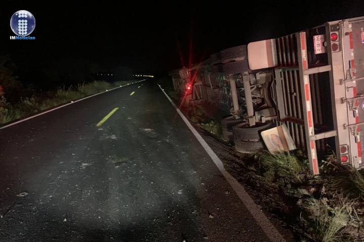 Un camión de aguacate se volcó a un costado de la carretera que comunica a la comunidad de La Rinconada con el municipio de La Piedad, a la altura del municipio de Ecuandureo, hecho que causó daños materiales, pero no generó pérdidas humanas.