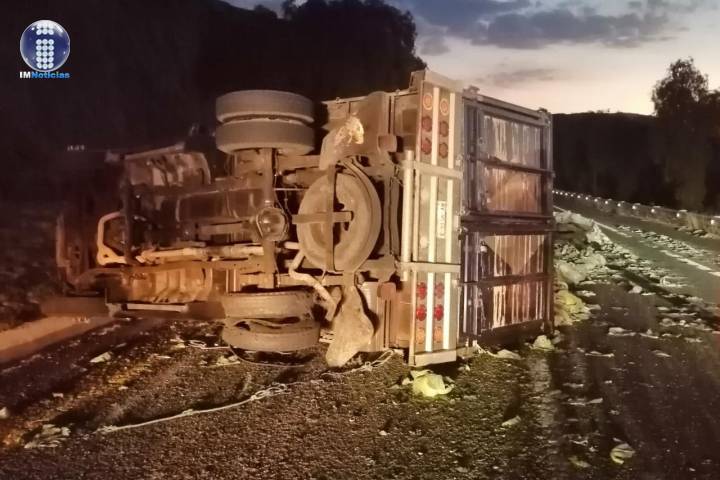 Un camión de carga volcó sobre la autopista de Occidente, a la altura del municipio de Zinapécuaro. Contactos policiales comentaron que únicamente hubo daños materiales.