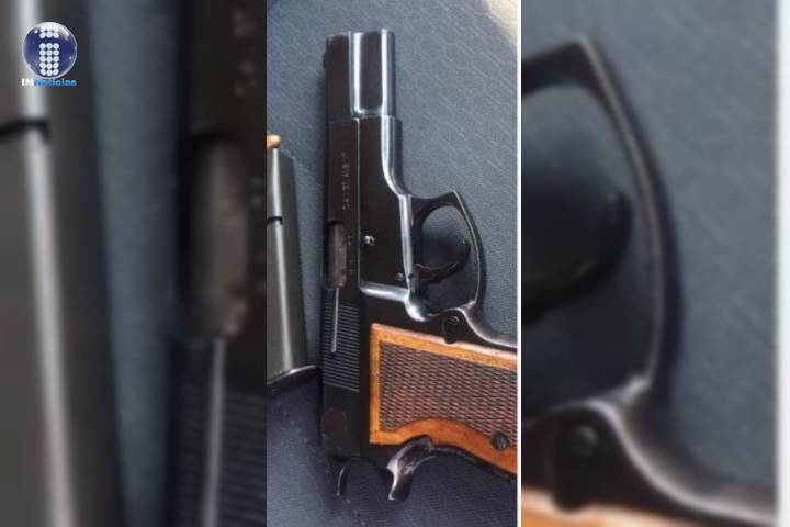 Derivado de una acción operativa, elementos de la Policía Michoacán detuvieron en la calle La Yerbabuena a José M., luego de localizar entre sus pertenencias el arma de fuego calibre .9 mm.