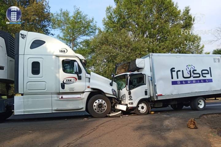 Debido a la falta de precaución e invasión de carril contrario, la tarde de este martes un tráiler se impactó contra una camioneta, en la carretera que conduce de Los Reyes a Jacona, cerca de la comunidad de Guáscuaro, perteneciente a este municipio de Tingüindín, resultando lesionado el conductor de una de las unidades.