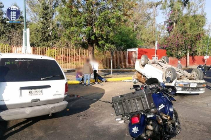 La mañana de este lunes se registró un choque entre dos camionetas y una de ellas terminó volcada sobre la Calzada Juárez de la ciudad de Morelia, percance que dejó dos personas levemente lesionadas, mencionaron contactos policiales.