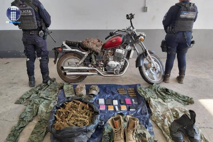Durante un recorrido de vigilancia en la colonia San Rafael, agentes de la Policía Michoacán ubicaron sobre la calle Cantera el vehículo de la marca Italika sin placas de circulación, procediendo a inspeccionarlo.