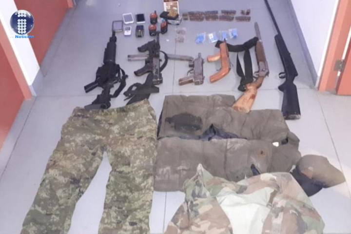 NOTICIAS 27/02/2020Detienen SSP y FGE a tres en posesión de armas, cartuchos útiles, drogas y equipo tácticoElementos de la Secretaría de Seguridad Pública (SSP), y de la Fiscalía General del Estado (FGE), detuvieron a tres personas del sexo masculino en posesión de armas de fuego, cartuchos útiles, equipo táctico, y envoltorios con hierba verde al parecer marihuana y sustancia granulosa con las características de la metanfetamina; acción registrada en este municipio.