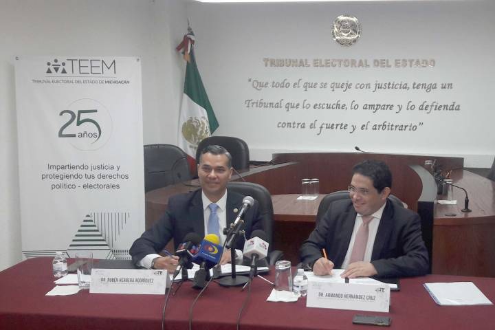 El Tribunal Electoral del Estado de Michoacán en el marco de su vigésimo quinto aniversario y con el firme propósito de consolidar el sistema electoral y difundir la cultura de la legalidad, en colaboración con el Tribunal Electoral de la Ciudad de México, firmaron convenio en su respectivo ámbito de competencia, para la realización de proyectos y trabajos conjuntos en materia electoral.