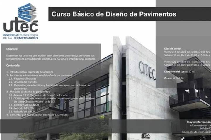 NOTICIAS 21/03/2016UTEC: En abril el curso básico de "Diseño de Pavimentos"La Universidad Tecnológica de la Construcción (UTEC) convoca a los interesados a increÃbles al Curso Básico de Diseño de Pavimentos, que se realizará en abril próximo y tendrá una duración de 20 horas.