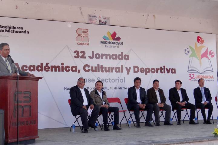 El director general del Colegio de Bachilleres del Estado de Michoacán (COBAEM), Alejandro Bustos Aguilar, inauguró las XXXII Jornadas Sectoriales 2016 en el municipio de Huaniqueo.