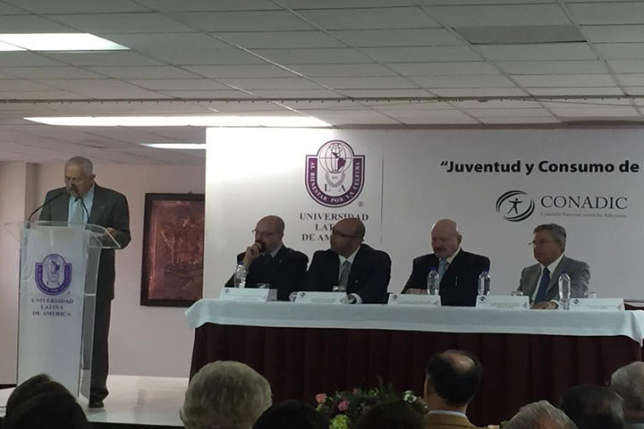 Con la finalidad de evitar el consumo de algún tipo de droga y dar a conocer las condiciones actuales en que se encuentra el país en este rubro, la Universidad Latina de América realizó una conferencia magistral donde participó Manuel Mondragón y Kalb, comisionado nacional contra las adicciones.