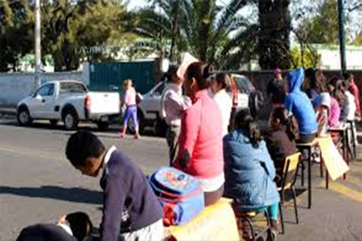 Alumnos de la Escuela Primaria "Primero de Mayo", ubicada en la colonia Tierra y Libertad, de esta ciudad de Morelia, reciben sus clases en la calle, pues el plantel educativo está tomado por los integrantes de la Mesa Directiva de Padres de Familia, quienes se oponen a que los profesores de la Coordinadora Nacional de Trabajadores de la Educación (CNTE) estén en los salones al frente de los grupos, pues aseveraron que siempre faltan a las a... Ver más...