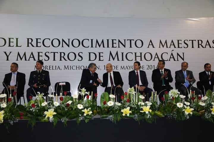 Los padres de familia y docentes michoacanos debemos aspirar a brindar educación de calidad, cimentada en valores humanistas y con el reconocimiento de una era globalizada que nos obliga a ser competitivos; debemos avanzar sin temor hacia la educación de calidad, y para lograrlo requerimos del trabajo y esfuerzo de todos los actores involucrados; afirmó el mandatario estatal, Fausto Vallejo Figueroa durante el homenaje a profesores con 30 y ... Ver más...