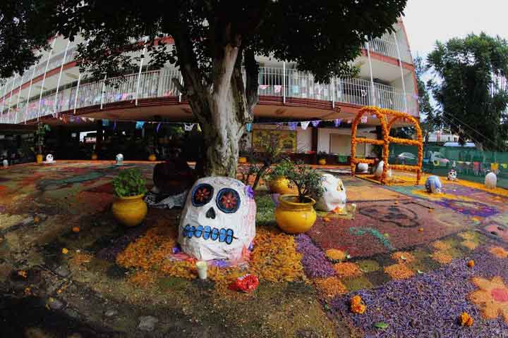Gracias a la coordinación de los profesores de artes plásticas, alrededor de 300 estudiantes fueron seleccionados para la elaboración de la ofrenda monumental que en este año fue dedicada a la exhibición de calaveras y catrin... Ver más...