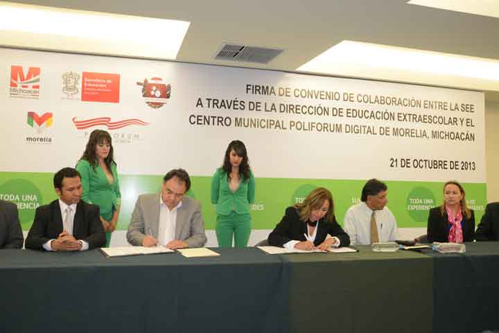 En una muestra más de la Suma de Voluntades, el Ayuntamiento de Morelia signó un convenio con la Secretaría de Educación en el Estado, gracias al cual se ampliarán las opciones educativas que se ofertan en el Centro Digital Polifórum.