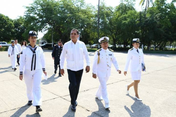 El vicealmirante Luis Mario Ramón Bravo Román, comandante de la 10 Zona Naval, a nombre del secretario de Marina, almirante Vidal Francisco Sob... Ver más...
