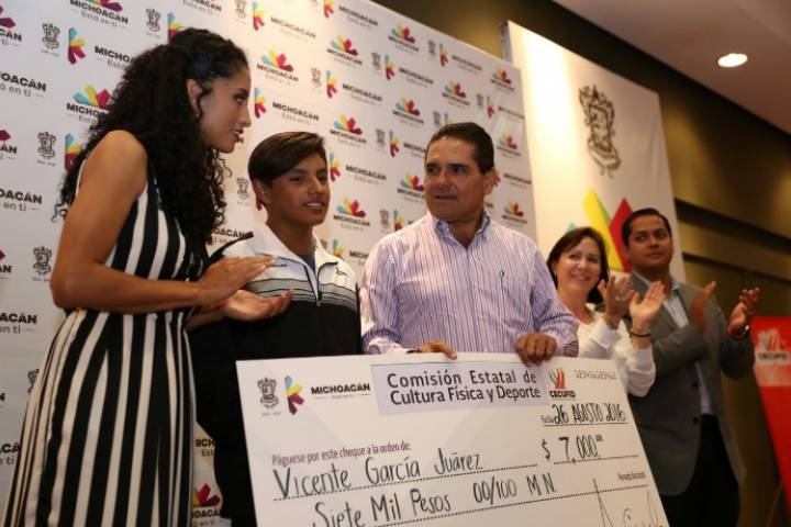 Después de varios años, el Gobierno del estado de Michoacán, a través de la Comisión Estatal de Cultura FÃsica y Deporte (Cecufid), entregó estÃmulos económicos a los medallistas y entrenadores de Olimpiada, Paralimpiada y Nacional Juvenil 2016. La inversión total fue de 617 mil pesos, los cuales fueron repartidos entre los ganadores de preseas de oro, plata y b... Ver más...
