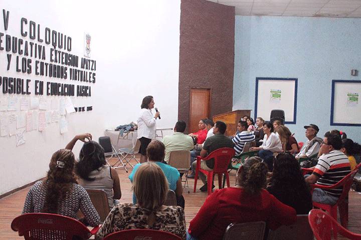 NOTICIAS 23/01/2016Mejoran calidad educativa en la región de Tierra Caliente con la integración de medios virtuales Con un registro de 374 asistentes se llevó a cabo la extensión Apatzingán del XV Coloquio de Comunicación Educativa, bajo la temática "El pizarrón y los entornos virtuales, un binomio posible en Educación Básica", organizado por la SecretarÃa de Educación en el Estado (SEE) a través de la Dirección de Educación Extraescolar que encabeza Raúl Gama Reynoso.