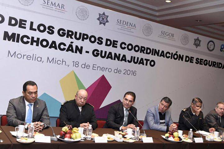 NOTICIAS 18/01/2016Fortalecen acciones de seguridad Michoacán y Guanajuato Los gobernadores de Michoacán y Guanajuato, Silvano Aureoles Conejo y Miguel Márquez Márquez, respectivamente, encabezaron esta mañana la reunión de trabajo de los Grupos de Coordinación de Seguridad de ambas entidades.