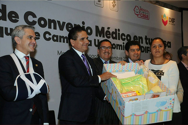 El jefe capitalino de la Ciudad de México, Miguel Ángel Mancera acudió a la firma de convenio "Médico en tu casa".