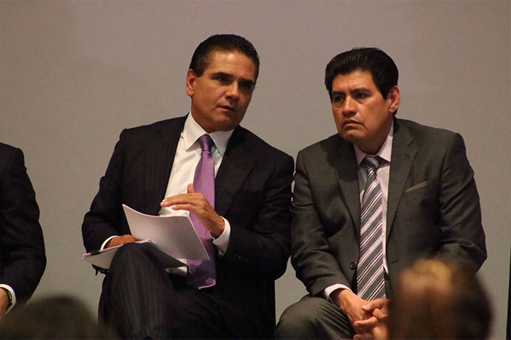 El secretario de Gobierno, Adrián López Solís, acompañado del subsecretario de Gobernación, Armando Hurta... Ver más...