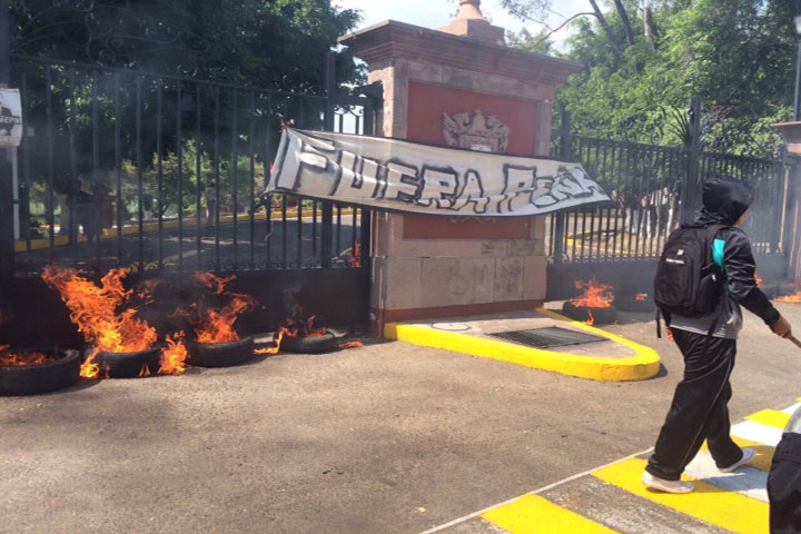 La quema de llantas frente a las puertas de Casa de Gobierno es un acto de provocación que reprueba el Poder Ejecutivo, ya que en reiteradas ocasiones se han instalado mesas de diálogo para atender las demandas de los estudiantes normalistas, por lo que no hay argumento que justifique el uso de la violencia en sus manifestaciones públicas.