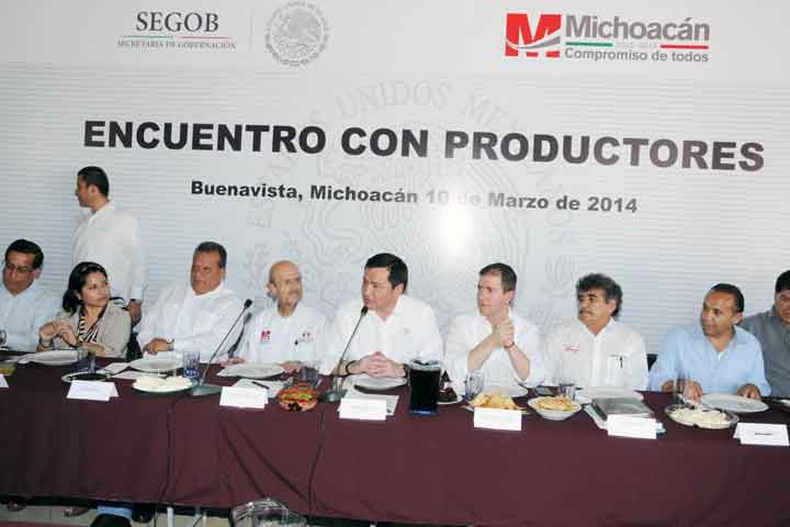 NOTICIAS 10/03/2014Autoridades se reúnen con productoresComo parte de su gira de trabajo por Buenavista, el gobernador del estado Fausto Vallejo Figueroa; el secretario de Gobernación federal, Miguel Ángel Osorio Chong; el comisionado para la Seguridad y Desarrollo Integral del estado, Alfredo Castillo Cervantes, además de delegados federales y funcionarios estatales, se reunieron con productores del estado, para escuchar sus planteamientos y necesidades, en relación a los sistemas producto Papaya... Ver más...