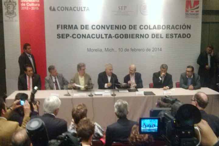 El secretario de Educación Pública, Emilio Chuayffet Chemor, anunció el despliegue de una importante estrategia de desarrollo cultural en Michoacán, que contempla la creación del Centro Cultural del Fondo de Cultura Económica (FCE) de Apatzingán.