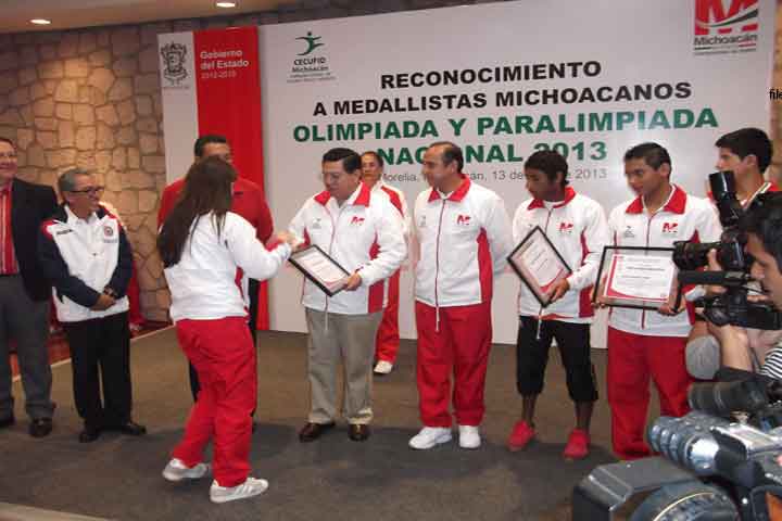Michoacán reconoció a sus atletas ganadores a nivel país, al ubicarse el estado en el sitio vigésimo cuarto en deporte convencional y décimo quinto lugar en deporte con discapacidad en la Olimpiada Nacional 2013 con 93 y 38 medallas conseguidas, respectivamente.