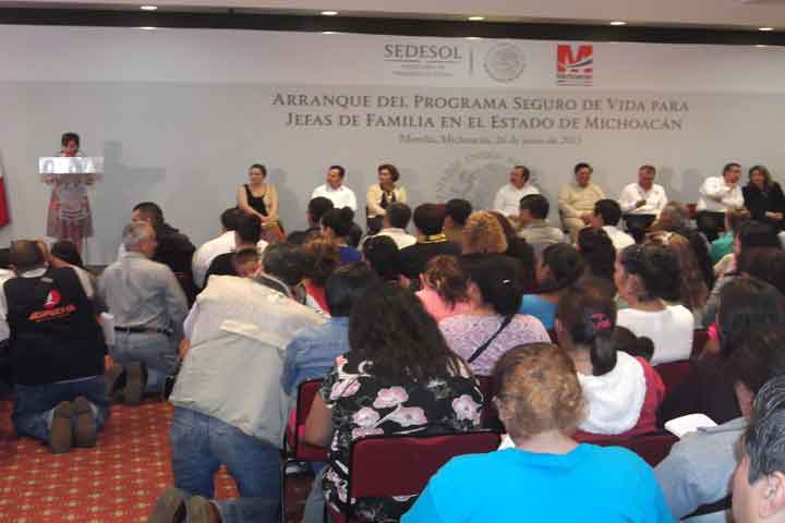 Con la presencia de la Secretaria de Desarrollo Social a nivel federal, Rosario Robles Berlanga, inició en Michoacán el programa "Seguro de Vida para Jefas de Familia" en beneficio de los 7 municipios en los que opera la Cruzada Contra el Hambre.