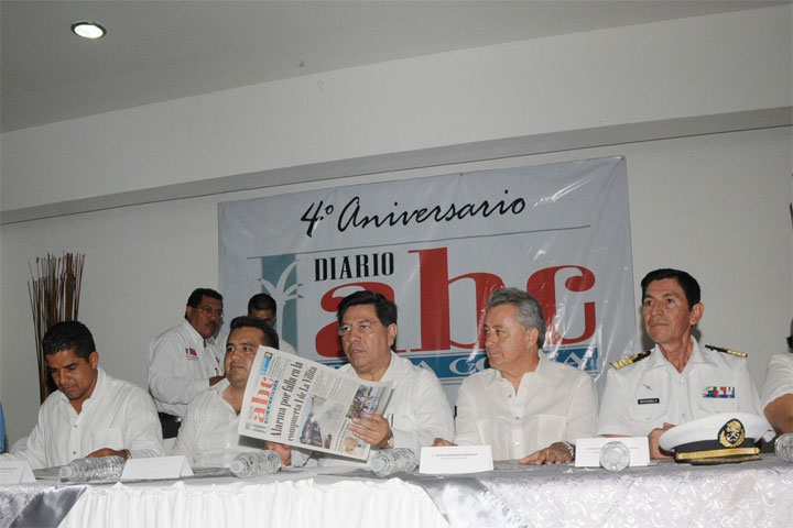 El gobernador del estado Jesús Reyna GarcÃa asistió a la conmemoración del IV Aniversario del Diario ABC de la Costa, donde reconoció la responsabilidad social de los medios de comunicación en su labor informativa.