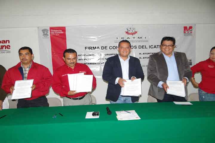NOTICIAS 11/09/2012ICATMI signa convenio de colaboración con cinco ayuntamientosCon la finalidad de capacitar a los ciudadanos de los municipios de Uruapan, Nahuatzen, Nuevo Parangaricutiro, Paracho y Charapan, el director general del Instituto de Capacitación para el Trabajo en Michoacán (Icatmi), BertÃn Cornejo MartÃnez, efectuó la signa de cinco convenios de colaboración institucional con estos ayuntamientos.