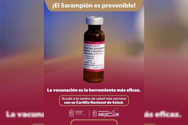 NOTICIAS 26/01/2026Disponibles en Michoacán más de 700 mil dosis para prevenir el sarampión: SSMLa Secretaría de Salud de Michoacán (SSM) dispone de 721 mil 257 dosis contra el sarampión. Al ser la herramienta más eficaz y segura para evitar contagios, el biológico se distribuye de manera gratuita en los 364 centros de salud de todo el estado.