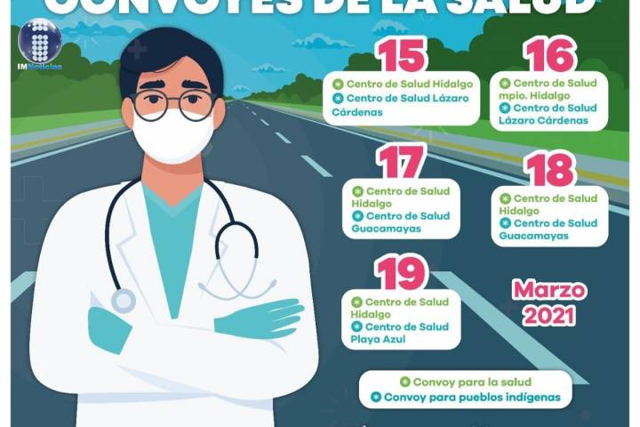 La Secretaría de Salud de Michoacán (SSM), informa a la población sobre los lugares en los que se encontrarán los Convoyes de Salud y de Pueblos Indígenas, del 15 al 19 de marzo, otorgando servicios gratuitos. La unidad móvil de Pueblos Indígenas, estará en el Centro de Salud Lázaro Cárdenas (15-16), Centro de Salud Guacamayas (17-18) y Centro de Salud Playa Azul (19), mientras que el Convoy de la Salud se encontrará en Centro de S...