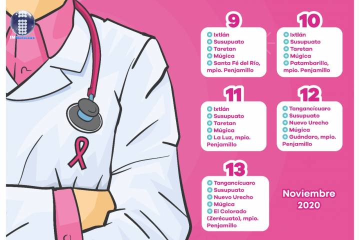 NOTICIAS 08/11/2020Desplegará SSM 5 unidades móviles de mastografía En aras de acercar atención médica gratuita a mujeres de 40 a 69 años de edad, la Secretaría de Salud de Michoacán (SSM), desplegará del 9 al 13 de noviembre cinco unidades móviles de mastografía en beneficio de las mujeres de comunidades indígenas o de difícil acceso.
