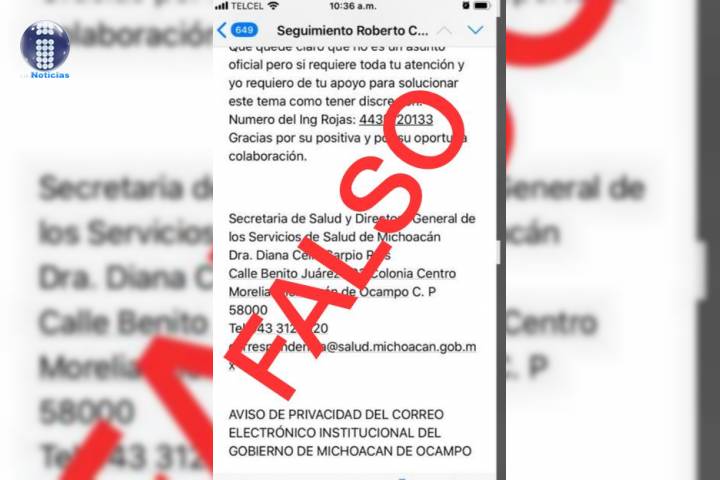 NOTICIAS 18/03/2020Alerta SSM sobre correos apócrifos La Secretaría de Salud de Michoacán (SSM), alertó a directores de Hospitales y jefes Jurisdiccionales, sobre la existencia de correos falsos emitidos a nombre de la titular de la dependencia, Diana Carpio Ríos, donde se les instruye a entregar apoyos económicos.