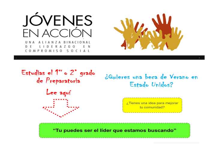 Con la finalidad de brindar a los jóvenes mexicanos la oportunidad de desarrollar sus capacidades de liderazgo, la oficina de Asuntos Internacionales de la Universidad Michoacana de San Nicolás de Hidalgo (UMSNH) convoca a la comunidad estudiantil del bachillerato nicolaita a participar en el programa "Jóvenes en Acción 2014".