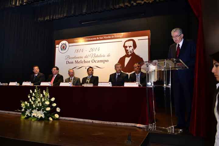 Como un justo homenaje a Don Melchor Ocampo, calificó el Rector de la Universidad Michoacana de San Nicolás de Hidalgo (UMSNH), Salvador Jara Guerrero la obra "Melchor Ocampo 1814-2014, Bicentenario" editada por la SecretarÃa de Cultura de Michoacán que se nutre con textos de diversos profesores e investigadores nicolaitas, que se presentó en la Biblioteca Pública de la Máxima Casa de Estudios.
