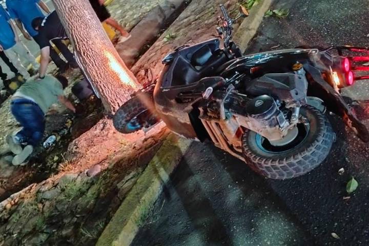 Motociclista queda gravemente herido tras chocar contra un árbol en LC Un joven motociclista sufrió un aparatoso accidente en la avenida Mel... Ver más...