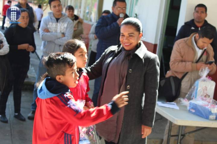 Wilma Zavala entrega cemento, pintura y calzado escolar en escuela primaria Francisco I. Madero en Zacapu