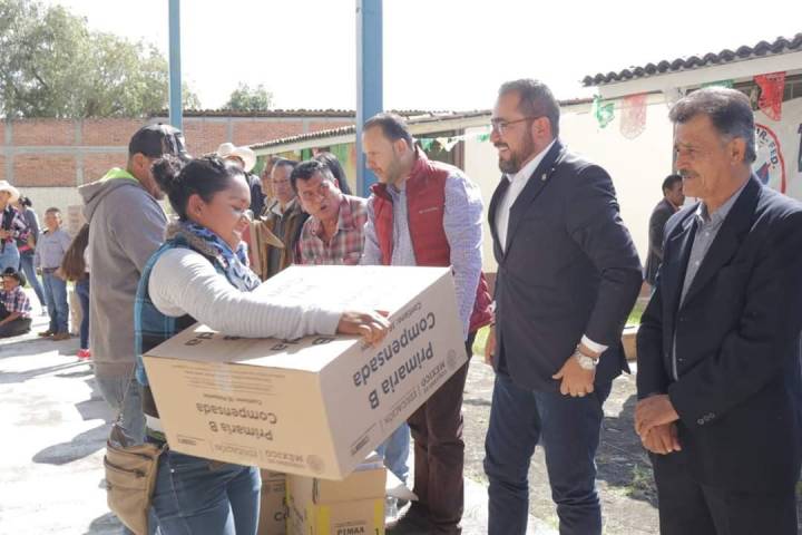 Humberto González, autoridades locales y estatales entregan apoyos al sector educativo en Huaniqueo