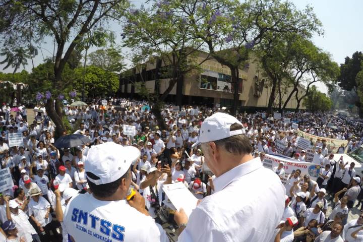 Al culminar la marcha conmemorativa del día del Trabajo, el delegado del Instituto Mexicano del Seg...