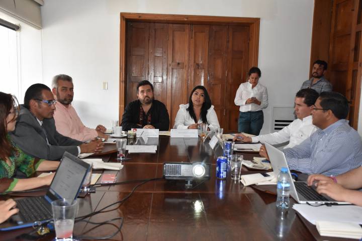 En reunión de trabajo, los diputados Erick Juárez, Alfredo Ramírez, Brenda Fraga y Marco Polo Agu...
