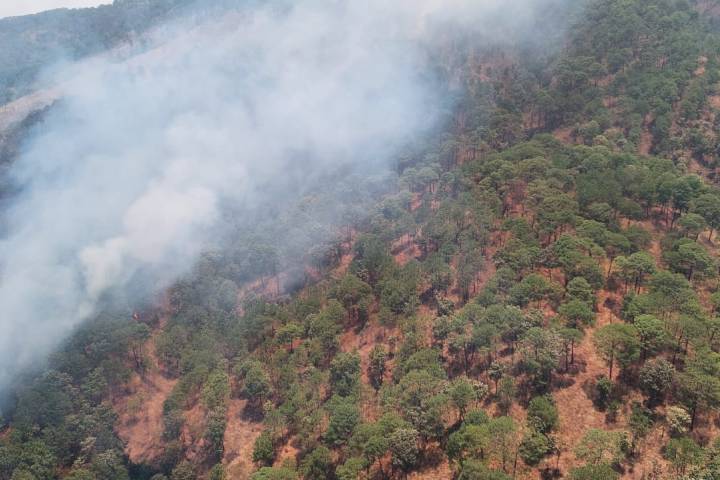 Por tierra y aire atienden incendio forestal en cerro de la Cruz