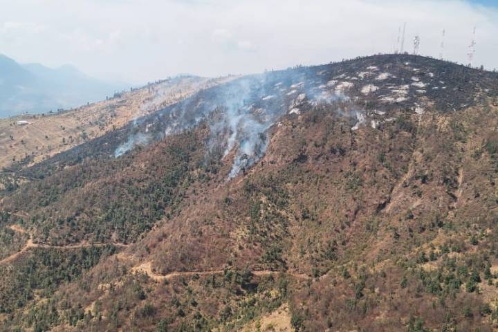 Sobrevuelan incendio forestal en Purépero y Zacapu; brigadas atienden por tierra