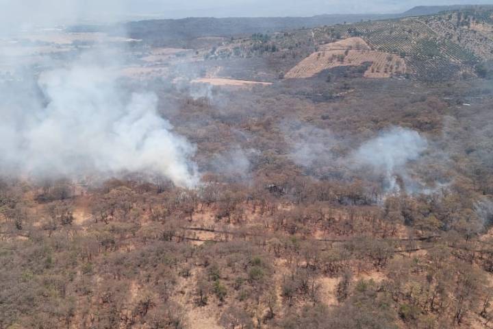 Helicóptero sobrevuela incendio forestal en Jiménez; continúa atención por tierra