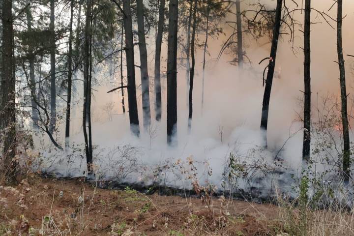 Brigadistas atienden de manera oportuna un incendio forestal en el predio Ojo de Agua de Bucio, en e...
