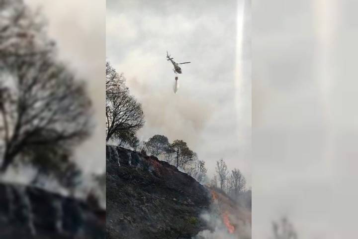 Despliegan helicóptero para sofocar incendio en San Ángel Zurumucapio