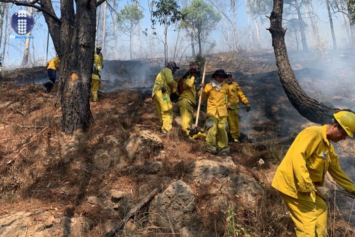Alrededor de 100 brigadistas combaten el incendio forestal en la Loma de Santa María al sur de More...