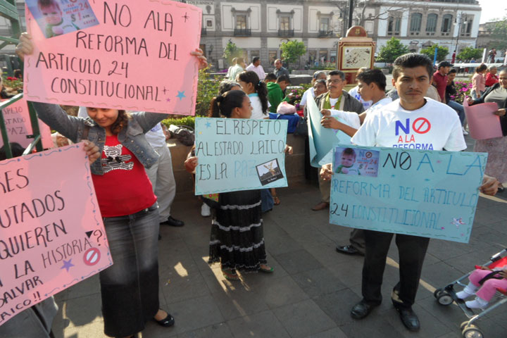 "Foro cívico, México laico" se manifiesta en la plaza Melchor Ocampo; exigen rechazo a la reforma del artículo 24