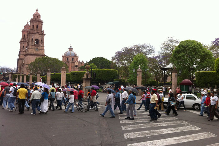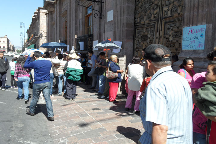 Se manifiestan maestros y habitantes de Ciudad Jardín en Palacio de Gobierno
