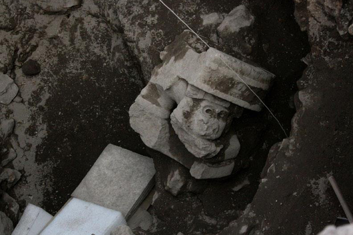 Descubren escultura de Huehuetéotl en la cúspide de la Pirámide del Sol