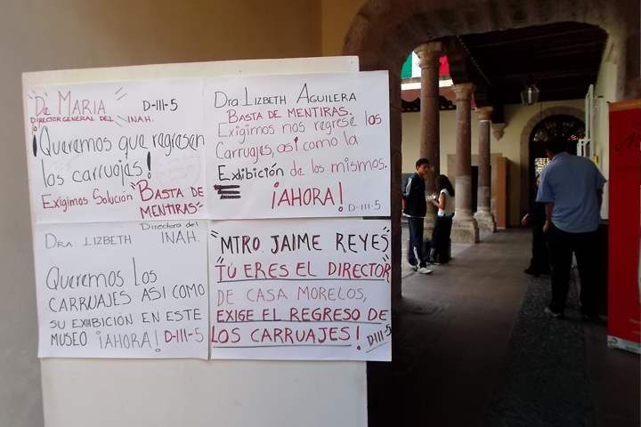 Trabajadores del "Museo Casa de Morelos" exigen al INAH regrese carruajes emblemáticos del lugar
