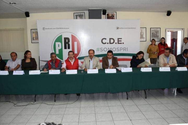 El Presidente del Comité Directivo Estatal (CDE) del PRI en Michoacán, Víctor Silva Tejeda, y el ...